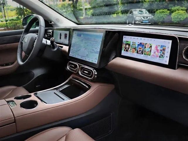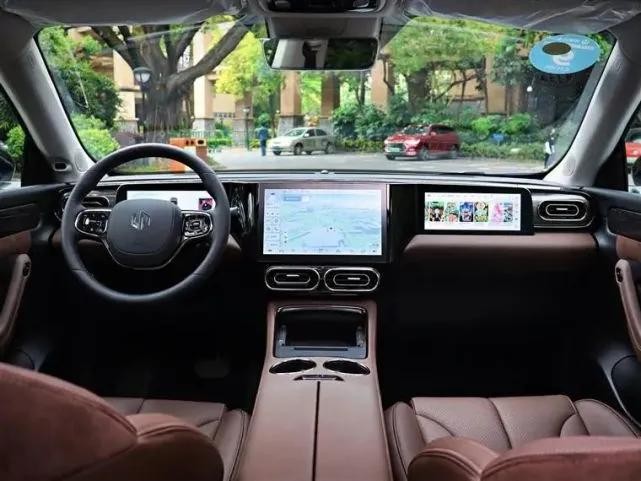 进入车内空间,中控台采用“T”字型布局,简洁大方,基本看不到什么物理按键,甚至连空调出风口设计得也比较隐蔽。提供玄黑/驼绒棕、岩灰/雾紫两种配色风格。中控台配备了三块屏幕,包括10.25英寸全液晶仪表盘、12.8英寸中控大屏以及10.25英寸副驾娱乐屏。中控屏搭载高通骁龙8295P芯片,支持智能语音控制、方言识别控制等功能,操作便捷。车内配备了64色车内氛围灯、12个高品质扬声器、自动空调和空气净化系统,提升了车内的舒适度和科技感。搭载全新一代Leapmotor OS操作系统,优化了UI交互,支持免唤醒、60秒连续对话以及方言识别。支持“可见即可说”的语音交互模式,用户只需将所需操作呈现于屏幕上,便可通过简单的语音指令完成控制。车机系统支持OTA升级,车主可以在车辆使用过程中随时更新车载系统,增加新功能和应用。