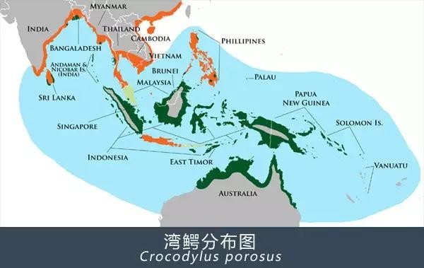 湾鳄 又名食人鳄、河口鳄、咸水鳄、马来鳄。为23种鳄鱼品种中最大型的,亦是现存世界上最大的爬行动物。对海水的耐受性较一般鳄强。具有极高的领地意识,任何进入它领域的生物都被视为猎物,包括人类。