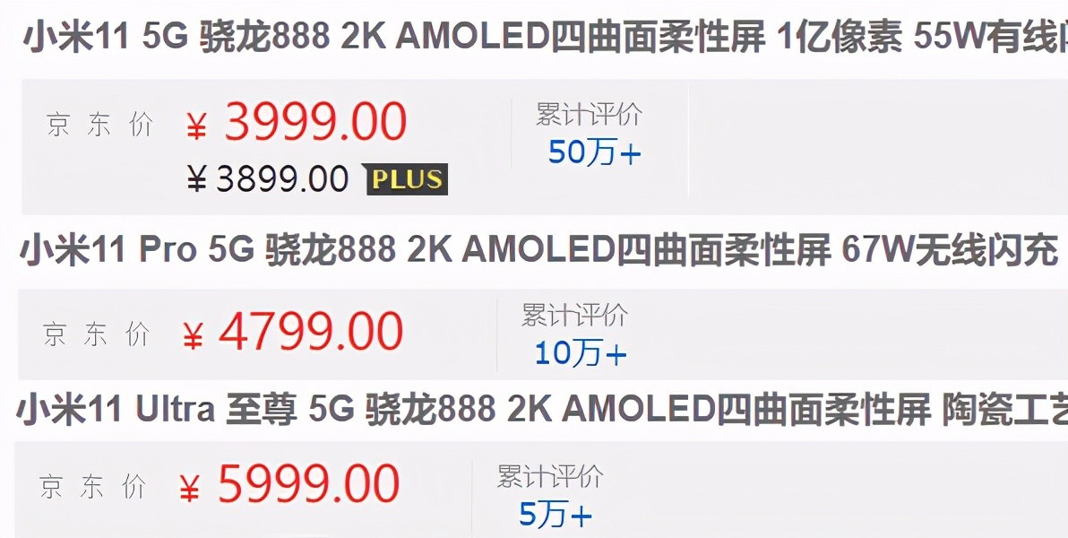 根据小米官方的数据,小米11系列的累计销量早已达到300万台,其中最受欢迎的就是最便宜的小米11。在京东自营上,小米11的累计评价已经有50万,小米11 Pro是10万,小米11 Ultra为5万。小米11是比小米11 Pro/Ultra早上市三个月,就算折半的话,销量也远超两位大哥。