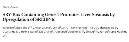 论文题目:SRY-Box Containing Gene 4 Promotes liver Steatosis by Upregulation of SREBP-1c