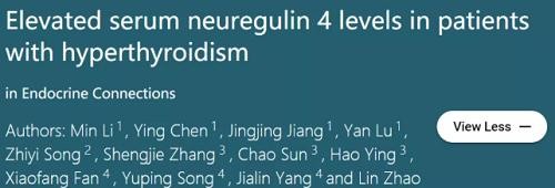 论文题目:Elevated serum neuregulin 4 levels in patients with hyperthyroidism