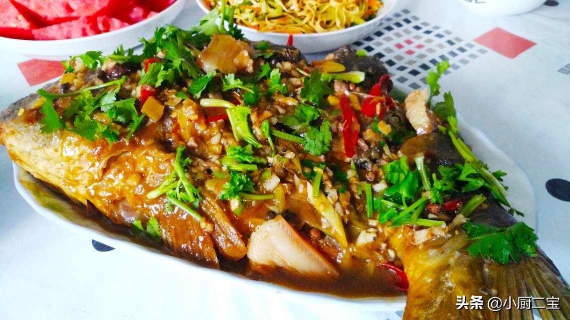 三道鳞鲤鱼的价格和普通鲤鱼的价格一样,可是三道鳞鲤鱼肉却特别鲜嫩,棉软,鱼味很浓,做出来特别香,身上鱼鳞还特别少,因此也是很多饭店里首选的一道菜,饭店里要想吃上一条三道鳞鲤鱼价格不便宜,有的饭店味道做得还很一般,今天路过菜市场卖鱼的小商贩刚刚把鱼运送过来,很鲜活,一问才5 元一斤,果断买了一条三道鳞大鲤鱼,共3斤半多一些,才18元,很便宜的。饭店吃一条3斤半三道鳞至少100元,我家只需18元,价优味美,性价比这么高,当然愿意在家吃,可在家里做三道鳞鲤鱼怎么做能好吃呢?今天就和大家分享我做的三道鳞大鲤鱼的家常做法。