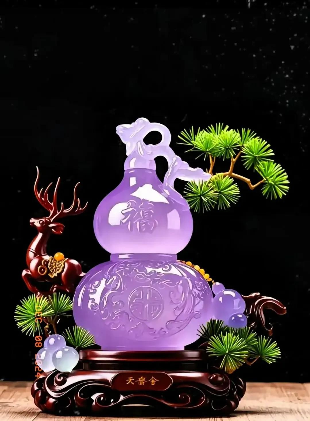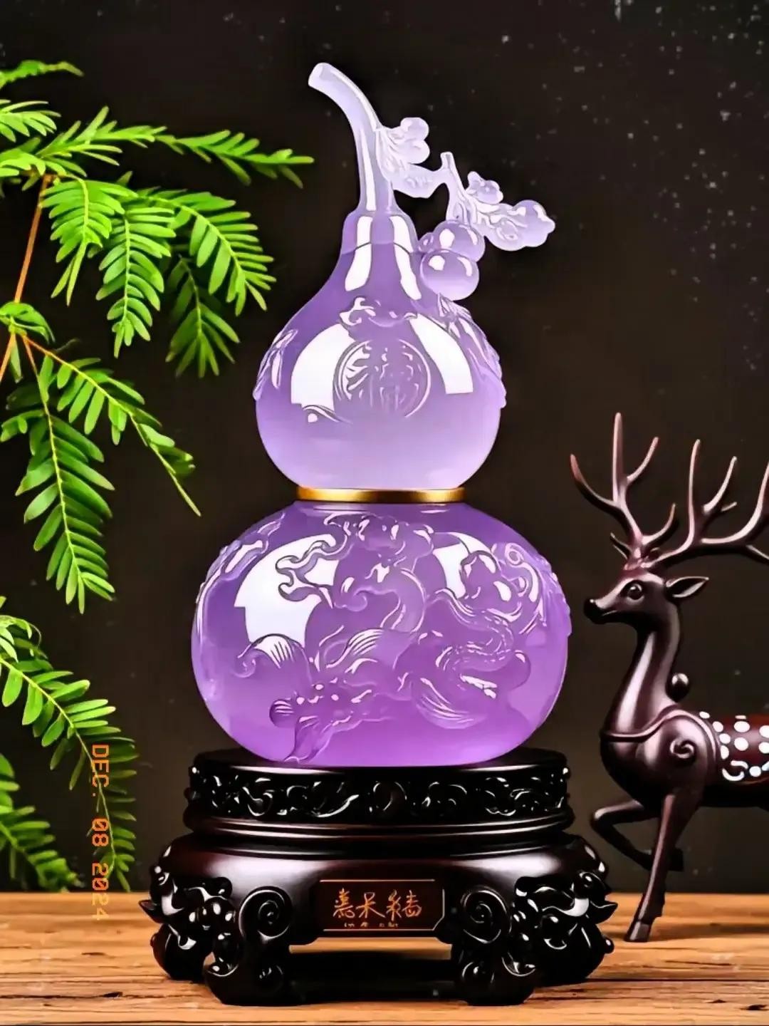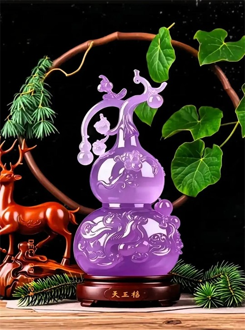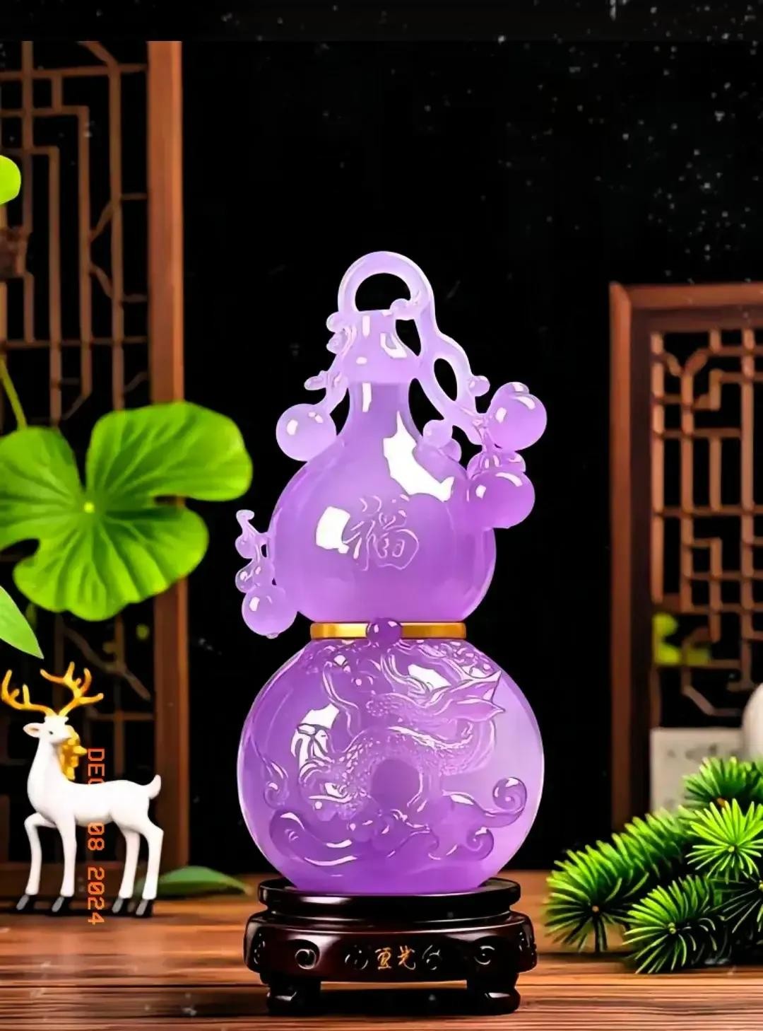 紫气东来,是指吉祥的征兆。宝葫芦色泽鲜艳,紫气环绕,寓意着财运旺盛,事业腾飞。